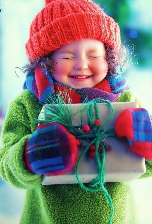 Maybe it's the colours, or the gift, or her mittens and bob cap?